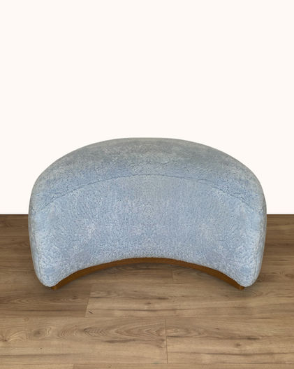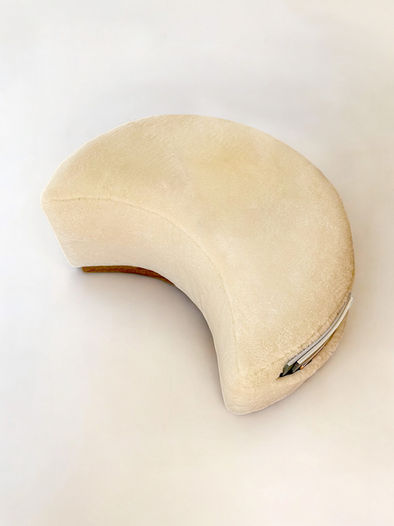 The MOON stool is playful, practical, and aesthetically pleasing. Its crescent moon design rests on a walnut or oak base. It can be made in a wide range of fabrics, with or without a side pocket for added functionality.